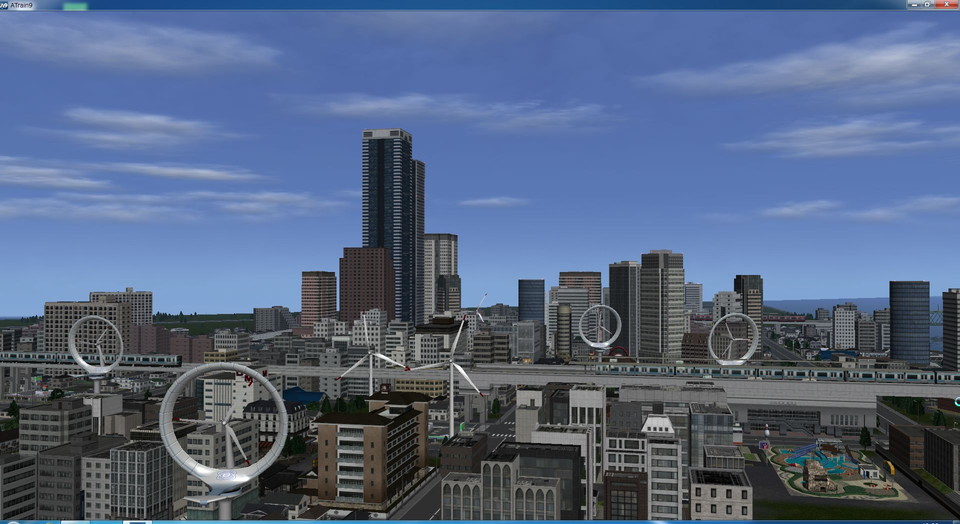風車を設置して近未来都市っぽくしようとしてみた三津駅前。